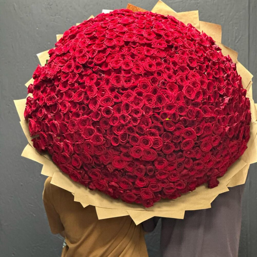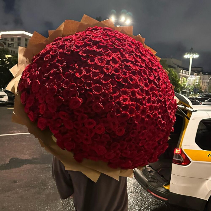 На фото букет из 501 красной розы «роскошный». В составе: роза 501 шт, дизайнерская упаковка 10 шт, атласная лента 1 шт, . Все цветы свежие и ароматные, букет красиво оформлен и отлично подходит для подарка. Доступна доставка цветов или самовывоз.