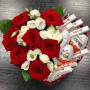 Букет из конфет Milka и розовые розы